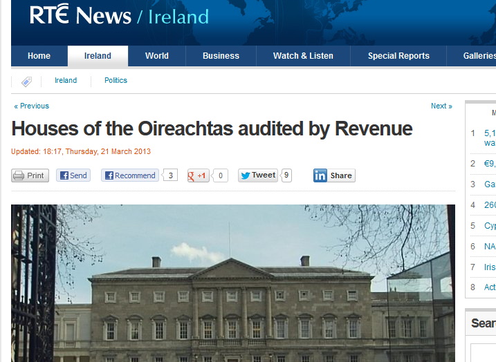 RTE News are reporting this evening that a Revenue are currently carrying out a tax audit on the Houses of the Oireachtas.